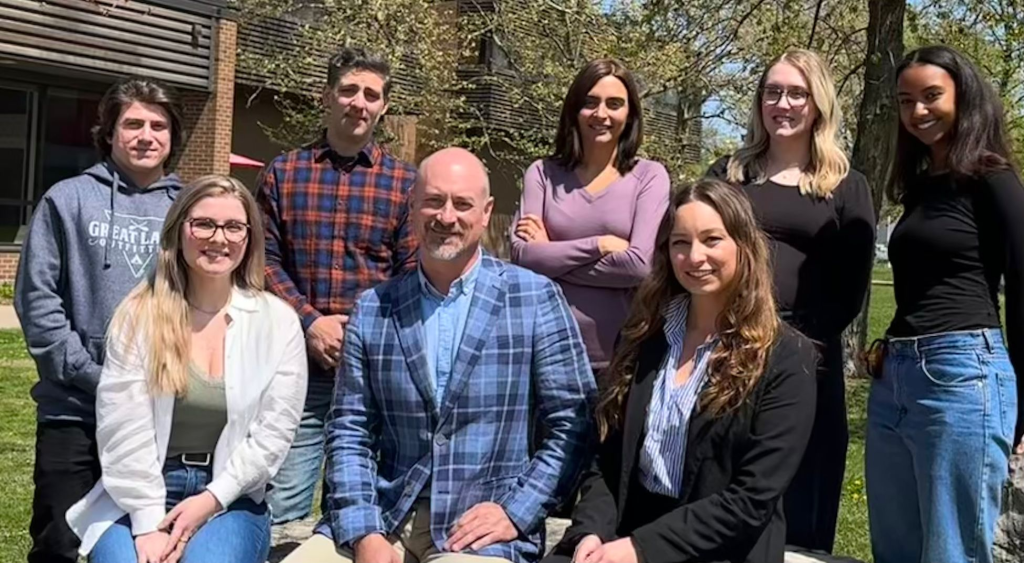 Pictured from left to right: Brandon Zuccato, Dr. Chris Abeare, Dr. Joe Casey, Kassandra Korcsog, and Isabelle Messa.